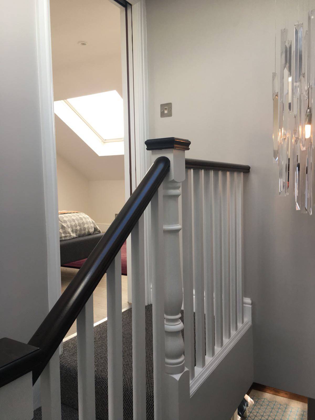 It’s not just about plonking a staircase into a loft conversion and hoping everything lines up. We carefully locate the centre point of the existing handrail and align it precisely with the new proposed newel post at the base of the loft flight. That alignment allows the handrail to flow naturally from the original staircase into the new one. In most cases, it’s best to continue the same balustrade style, spindle design and newel detail into the loft level. Doing so creates a cohesive connection between old and new, giving the impression the staircase has always belonged there.