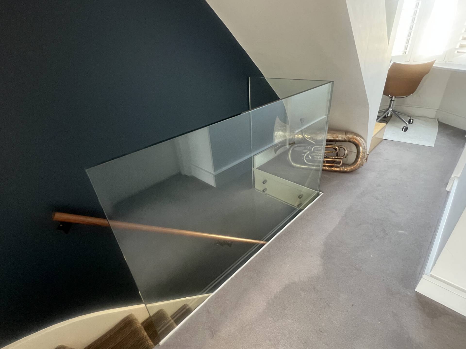 In modern homes, that continuity may mean extending a glass balustrade system up into the new loft conversion. Toughened glass panels can maintain sightlines, allow natural light to travel through the stairwell and complement a more contemporary interior. The principle remains the same: the staircase should feel unified, not like two unrelated sections joined together.