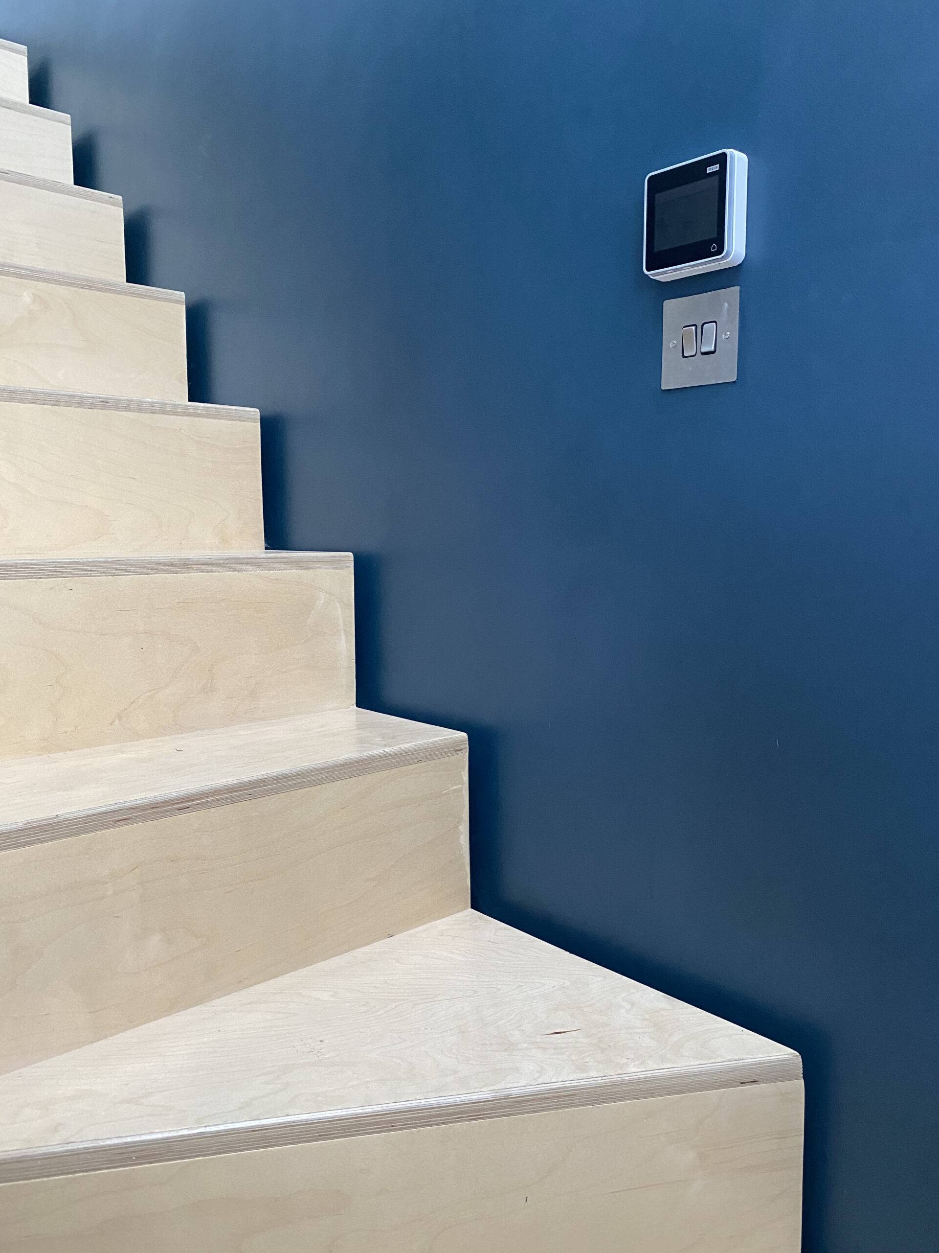 In terms of materials, there are many options. If you intend to carpet and decorate, we usually recommend a cost-effective staircase with pine strings, newels and balustrades, MDF treads and plywood risers. Once finished, this performs perfectly well. For more architectural schemes, we have installed solid oak, tulipwood and Douglas fir staircases. We’ve even used furniture-grade birch plywood to striking effect — exposing the end grain on the stair nosings and setting the structure slightly off the wall to create an LED shadow gap.